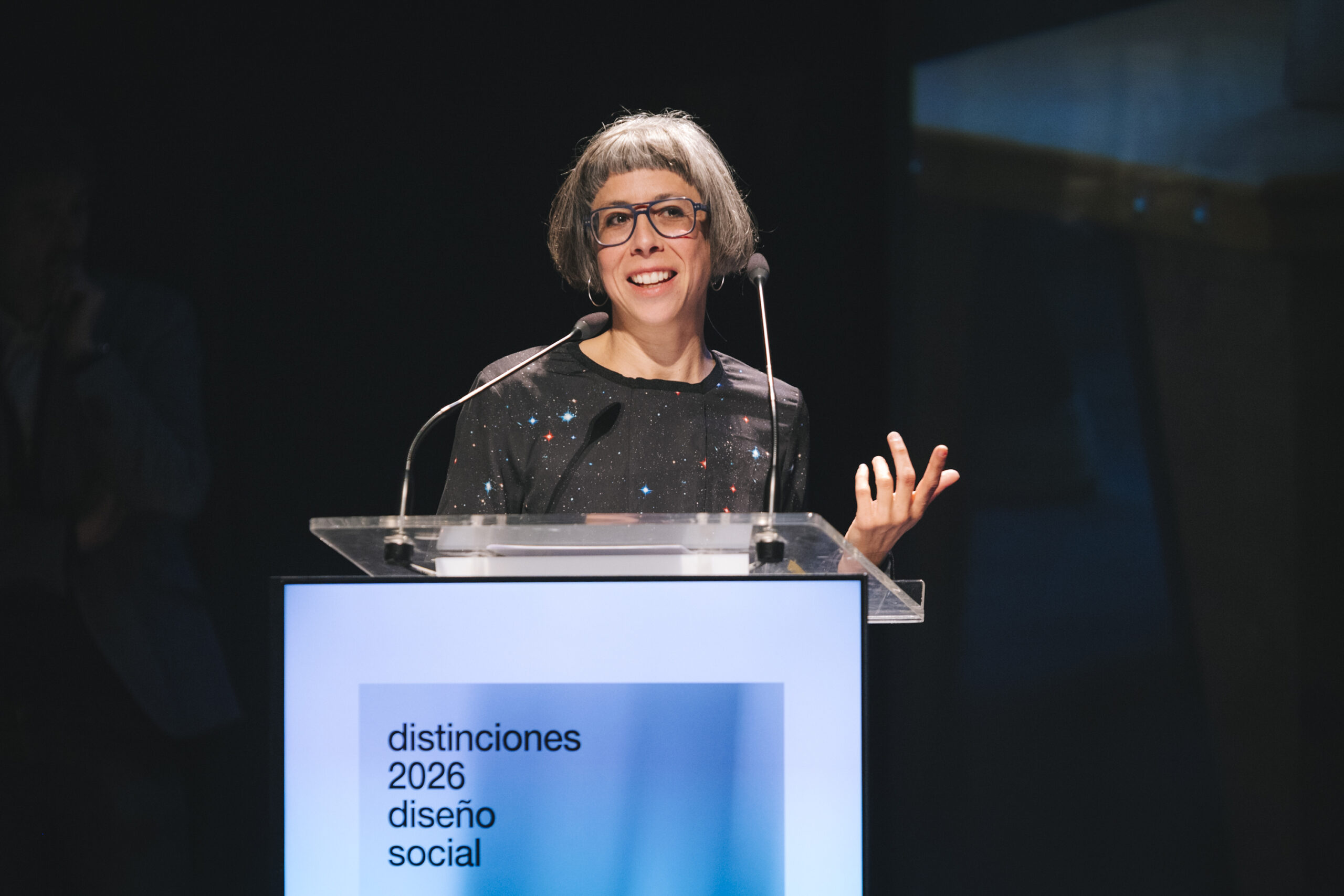 La segunda Distinción Profesional ha sido concedida en esta edición a Raquel Pelta, investigadora, historiadora y profesora universitaria, reconocida por haber situado la dimensión social del diseño en el centro del pensamiento académico y profesional en España. En su conferencia de clausura, titulada «El diseño social no es caridad», Pelta defendió una visión crítica y estructural del diseño como práctica transformadora, alejándolo de planteamientos asistencialistas y reivindicándolo como herramienta de justicia social y construcción cultural. Terminando su ponencia quiso subrayar que “el diseño social es una alternativa a la desesperanza, a hacer visibles las contradicciones con una potencia que genere dinámicas para resolverlas”.