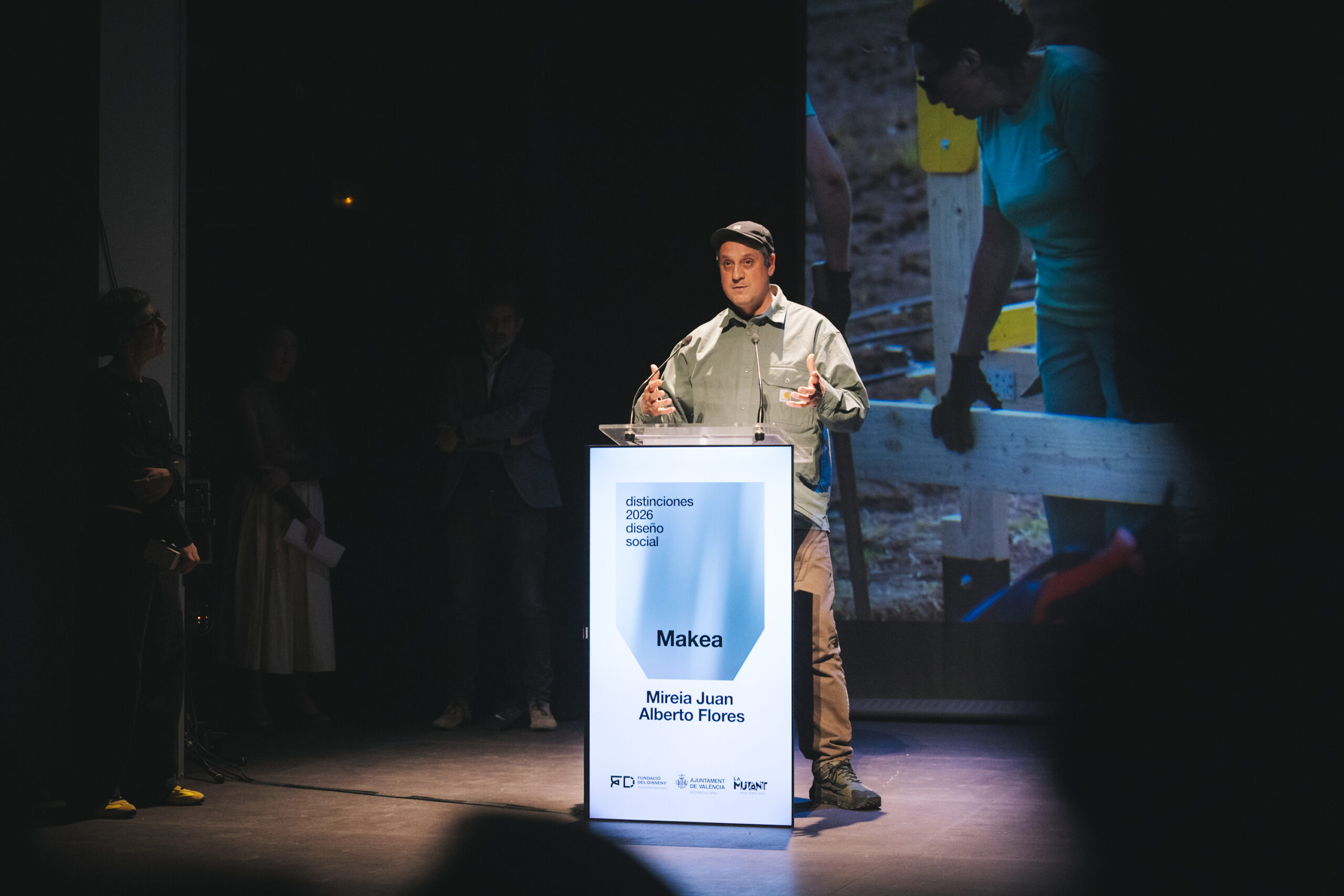 Una de las dos Distinciones Profesionales 2026 fue otorgada a Makea, cooperativa de carácter social y educativo con más de quince años de trayectoria en innovación social y diseño sostenible. Recogieron el reconocimiento Mireia Juan y Alberto Flores, quienes destacaron la importancia del diseño colaborativo, el código abierto y la economía circular como herramientas para empoderar comunidades y activar dinámicas de aprendizaje colectivo. Su intervención permitió conocer de primera mano su enfoque metodológico basado en la cocreación y la reutilización creativa, pero también tuvieron un momento para la motivación y la llamada a la acción.